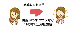 映画やドラマ、アニメなどの見放題作品は19万本以上あります。