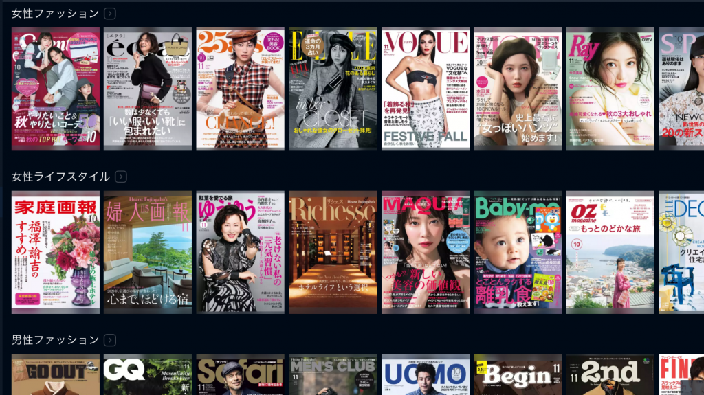 U-NEXTは、80誌以上の雑誌が読み放題です。